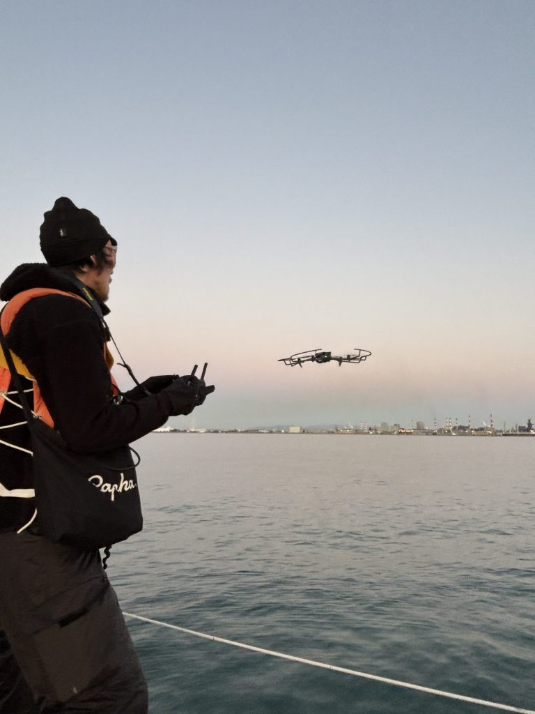夢の代行事の最終アイテムの播磨灘、堀川運河の夕暮れ時のヨットドローン撮影を行う。操縦士より大体いつ頃になる?と問い天候次第としてきた。12月3日に再び連絡があり主役であるヨット持ち主に連絡する。夕暮れの時間帯で、晴れ、雲量はゼロに近い、風波共に少ない日を探すと、12月6日と予測ができた。この映像は地域の自然の豊かさを紹介するドローンビデオとして編集公開する。