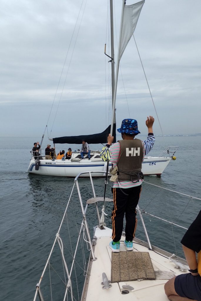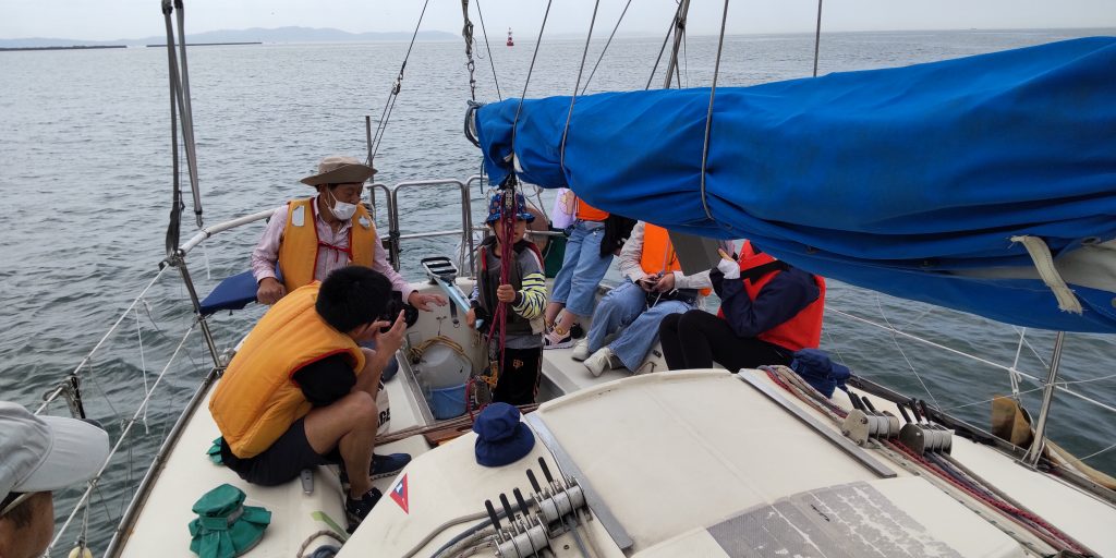 支援の必要な人たちのヨット体験行事を開催する。ある親子は毎回参加されている。子供は成長著しく、艇長指導のもとヨットの方向を定める舵を動かす舵棒、ティラーを握って操船体験をされました。第二回は大人の方々も体験をされました。